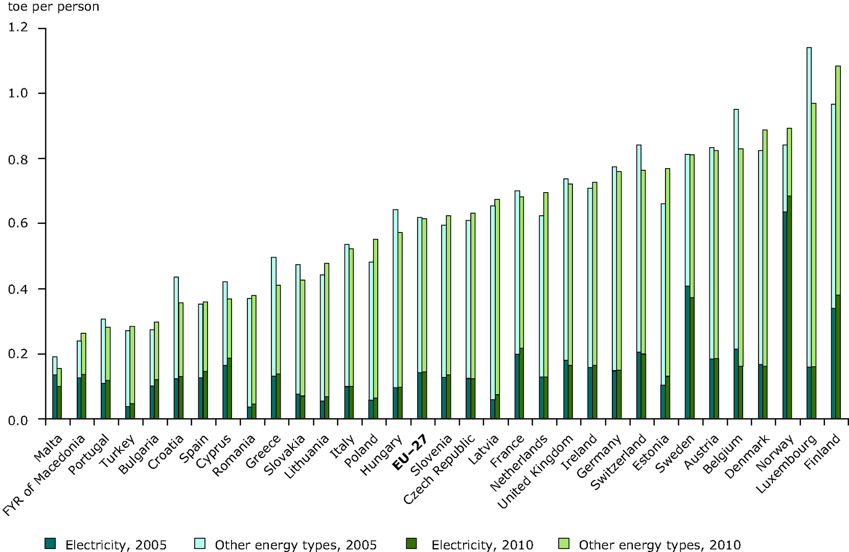The per capita data for many countries may be slightly inaccurate as population data may not be for the same year that the consumption data are.